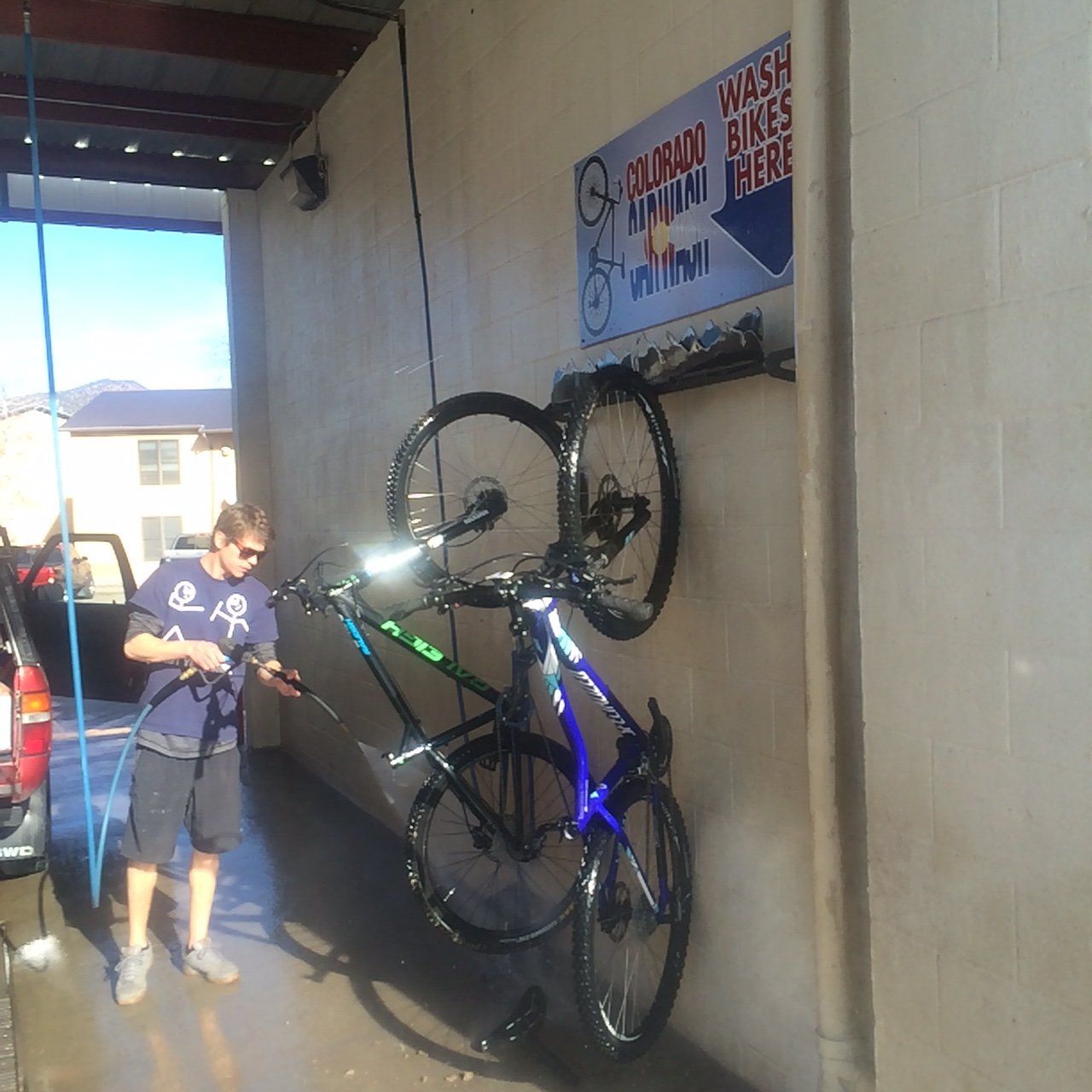 Unique, as far as we know, Colorado Car Wash may be the only Carwash facility to have in-bay bike racks to hang up to 4 bikes for ease of washing.